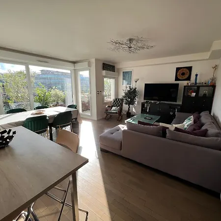 The apartment is situated in the 18th arr. district, within reach of Wall of Love. The Roman Catholic church and minor Sacre-Coeur Basilica is located just 0.6 miles from this apartment and 16 miles from Orly airport. Sainte-Chapelle is about 10 minutes by car from the property.